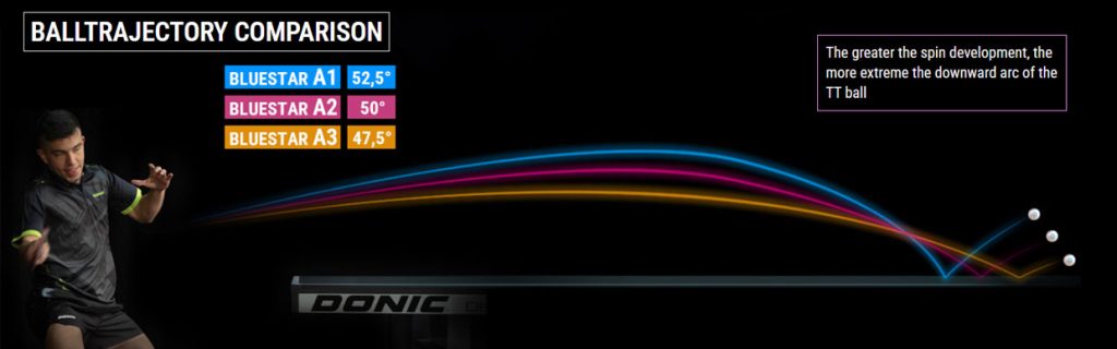 ยางด้านบน (Topsheet) ที่มีโครงสร้างเม็ดที่แคบและยาว ช่วยให้ยางมีความยืดหยุ่นสูงสุดและให้ความรู้สึกที่ยอดเยี่ยม โดยเฉพาะอย่างยิ่งเมื่อตีลูกท็อปสปิน (topspin shots) BLUEFIRE จะให้พลังขับเคลื่อนที่น่าทึ่งและวิถีการโค้งของลูกที่สูงมาก (arc หรือ flight path) ซึ่งมอบการหมุนสูงสุด (maximum rotation) และคุณสมบัติการดีดส่ง (catapult properties) ที่ดีที่สุด