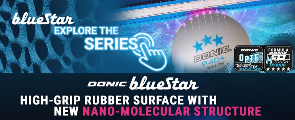 ยางหน้าไม้แบบเหนียว TACKY เช่นเดียวกับในซีรีส์ DONIC BLUEGRIP ที่ประสบความสำเร็จ ผสานกับฟองน้ำรับแรงดึงที่ใช้งานง่ายเหมือนหนังสติ๊ก