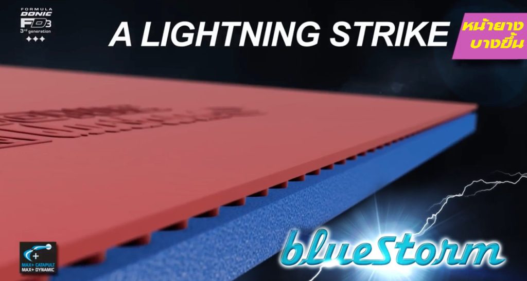 ยาง Bluestorm มีคุณสมบัติไดนามิกสูงที่คุณจะรู้สึกได้อย่างชัดเจน พร้อมด้วยสปินและความเร็วที่ยอดเยี่ยม ยางนี้เป็นสัญญาณบ่งชี้ถึงทิศทางของยางปิงปองในอนาคตที่จะมาแนวทางเทรนด์นี้