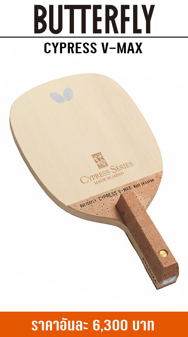 Cypress V-MAX เป็นไม้ปิงปองสไตล์ญี่ปุ่น (Japanese Penhold) อีกรุ่นหนึ่งในซีรีส์ Cypress ของ Butterfly ที่มีชื่อเสียง ซึ่งได้รับการออกแบบมาเพื่อผู้เล่นที่ต้องการความเร็วและพลังในการบุกที่ยอดเยี่ยมเช่นกัน แต่ก็มีความแตกต่างจาก G-MAX อยู่บ้างเล็กน้อยในด้านความรู้สึกและประสิทธิภาพ